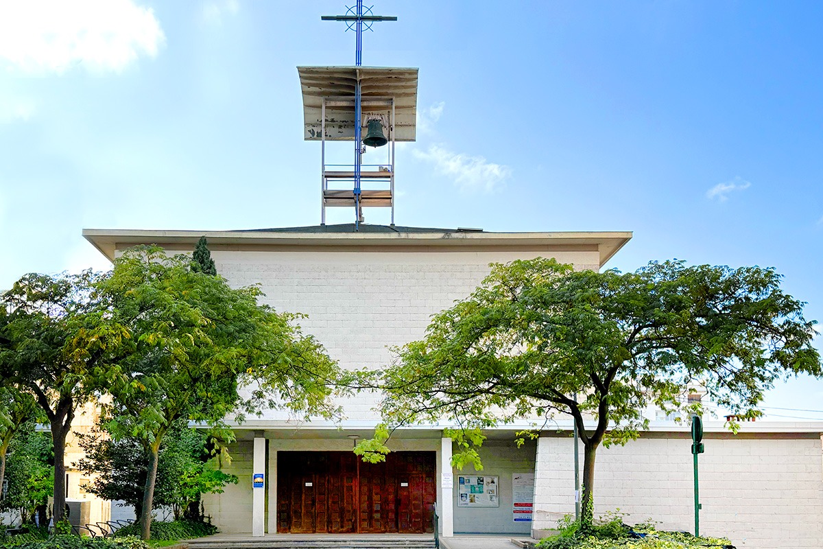 Dès ses premières esquisses, l’architecte Michel Joulie affirme des signes de modernité puissants, emblématiques de l’architecture religieuse du Mouvement moderne: des volumes géométriques simples, des matériaux pauvres, des façades abstraites texturées de verres colorés, une nudité des murs et un refus du décor..